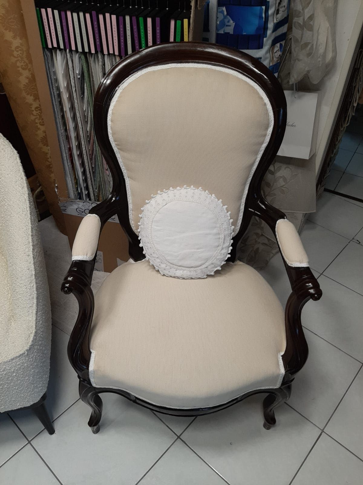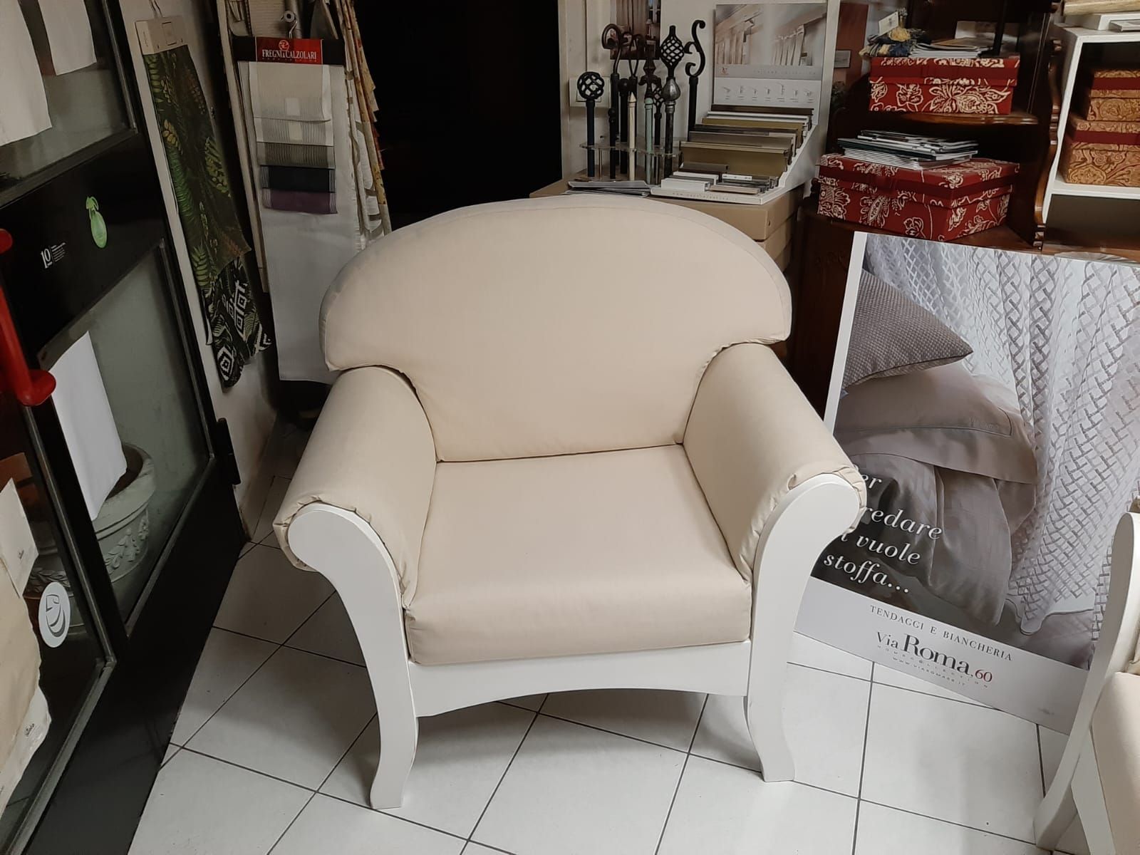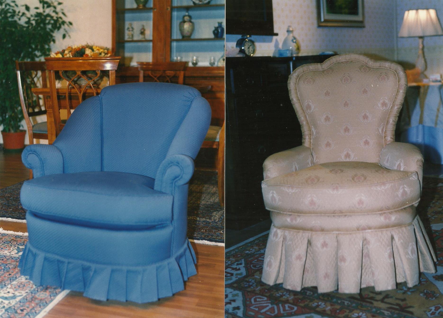 rivestiamo ogni tipo di divano, poltrona e sedia, sia di antiquariato con molle e pagliericcio, sia tipi più moderni sfoderabili. Con finiture sia con chiodi dalle più svariate fattezze alle passamanerie di ogni tipo.